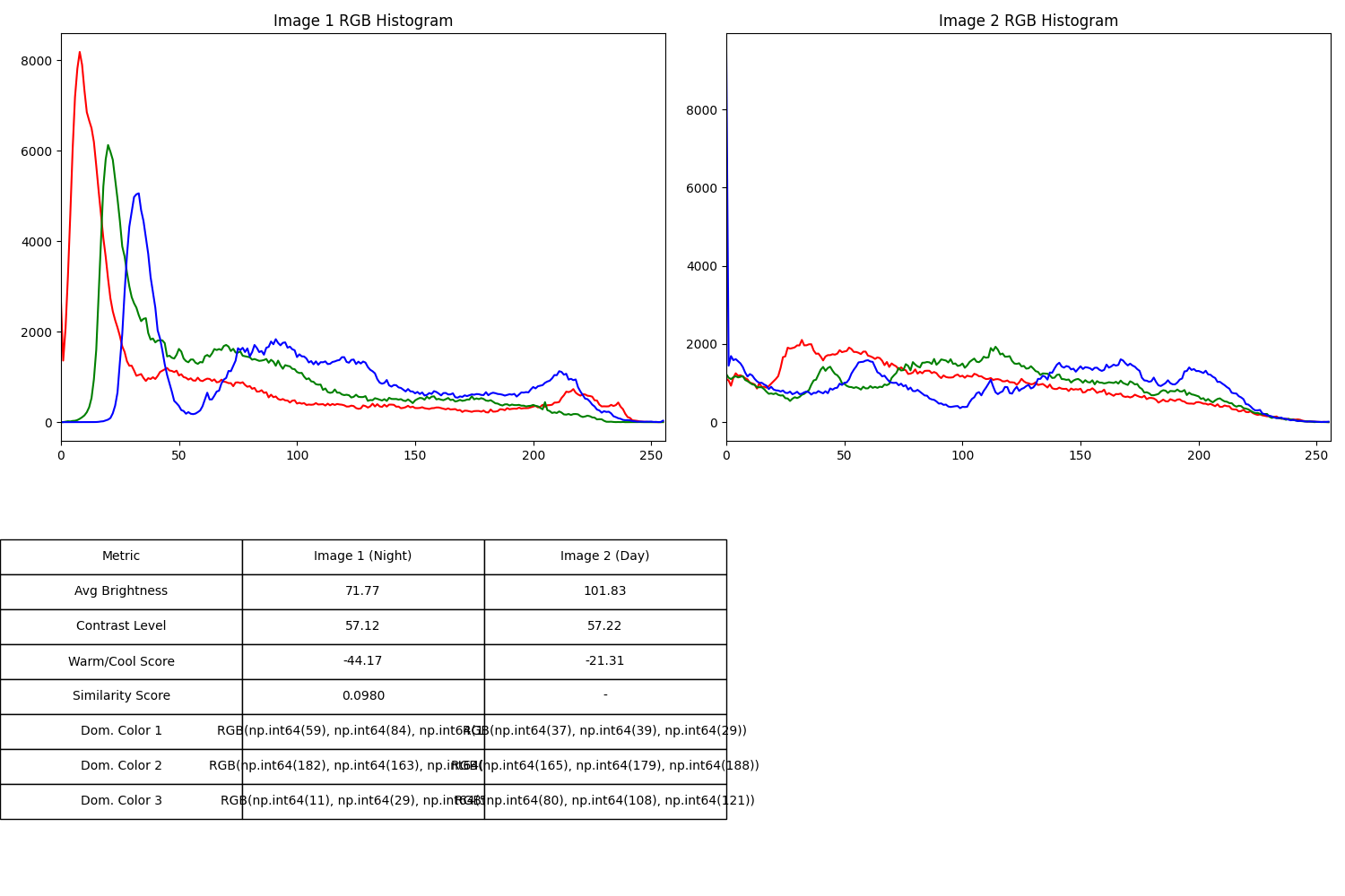 ["Metric", "Image 1 (Night)", "Image 2 (Day)"],