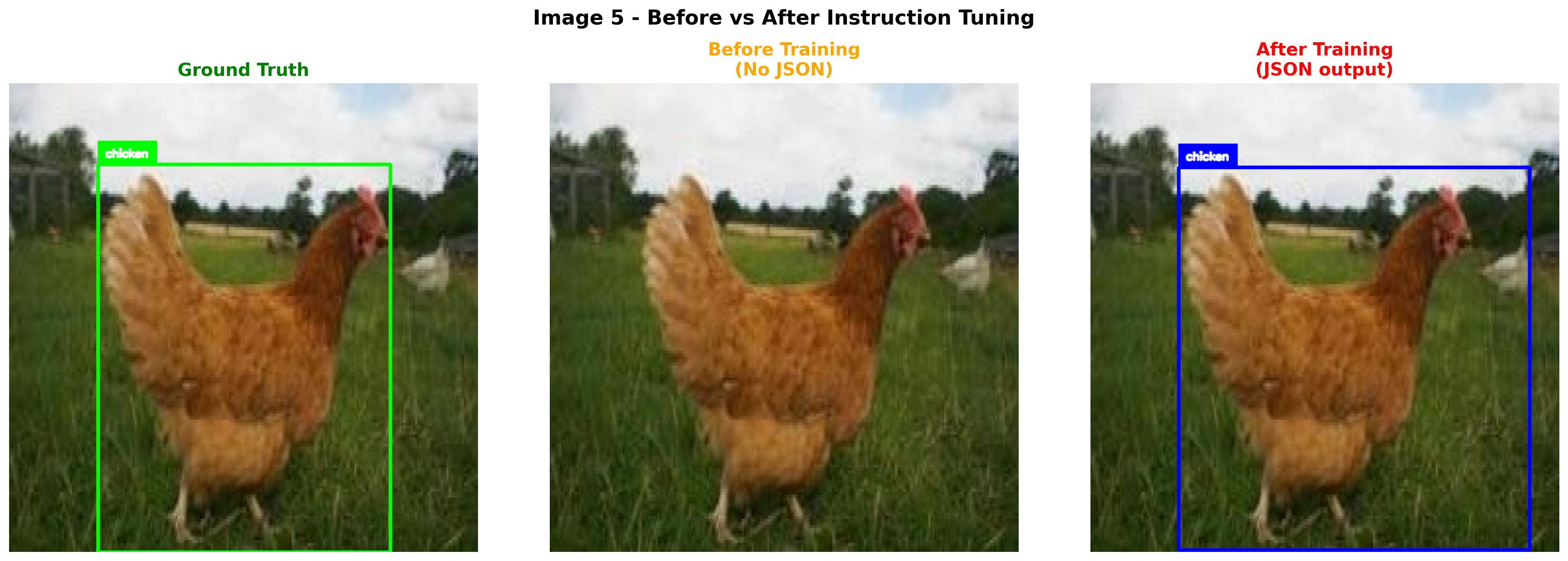 We successfully instruction fine-tuned our VLM for object detection: