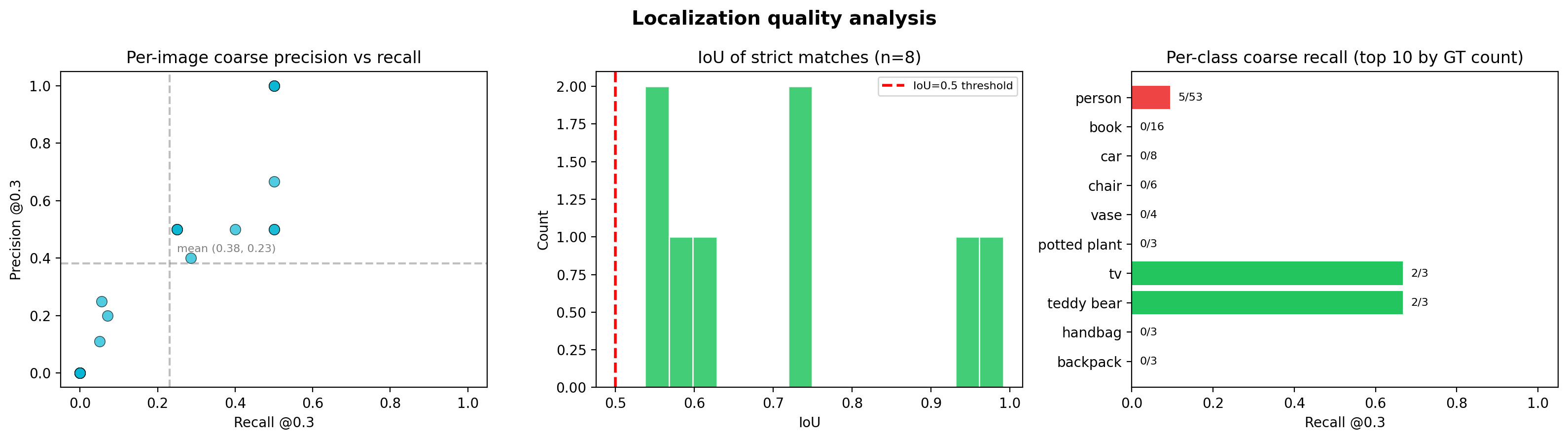 """Class-aware localization analysis with coarse and strict views."""