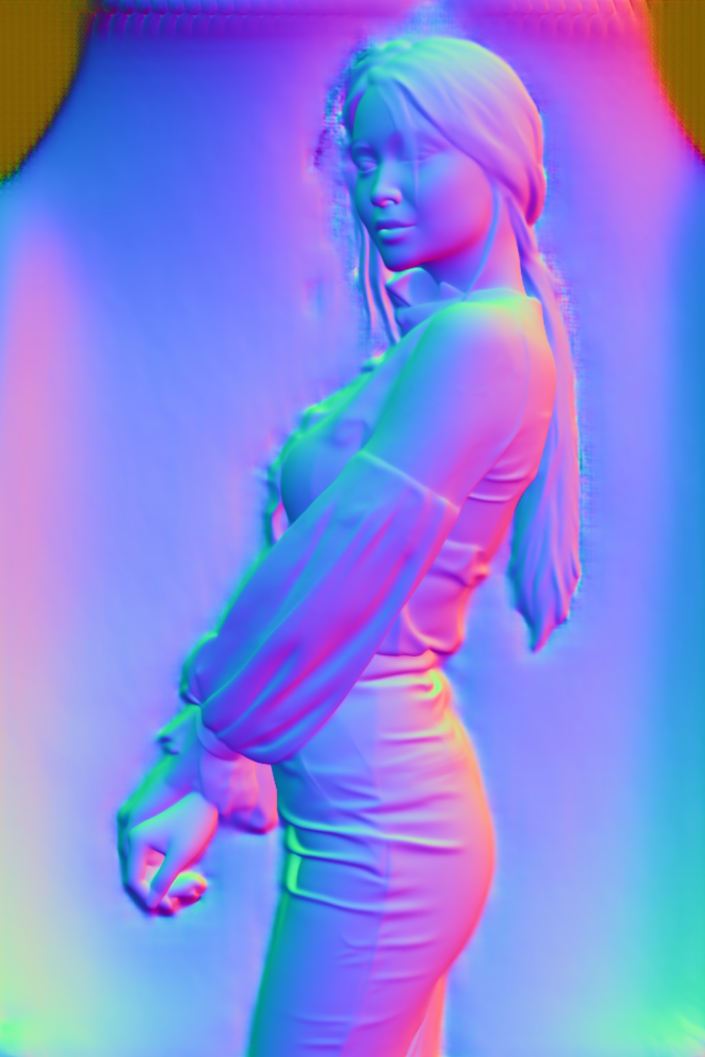person1. The model gives a unit normal at every pixel; magenta points toward the camera, greens to the right.