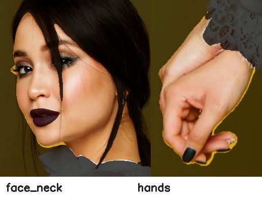crop = img[ys.min():ys.max(), xs.min():xs.max()]The skin-region crops for person2 look like this: