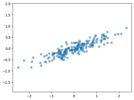 The visualization makes the presence of this random noise clear. Let’s train a PCA model on the noisy data, requesting that the projection preserve 50% of the variance: