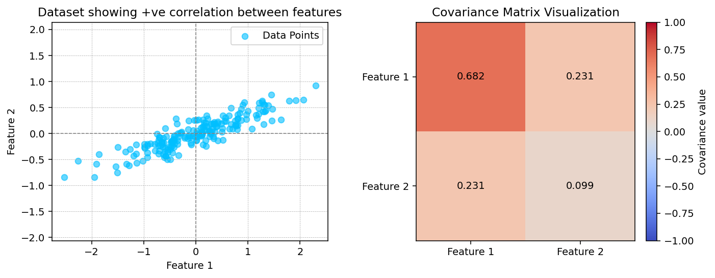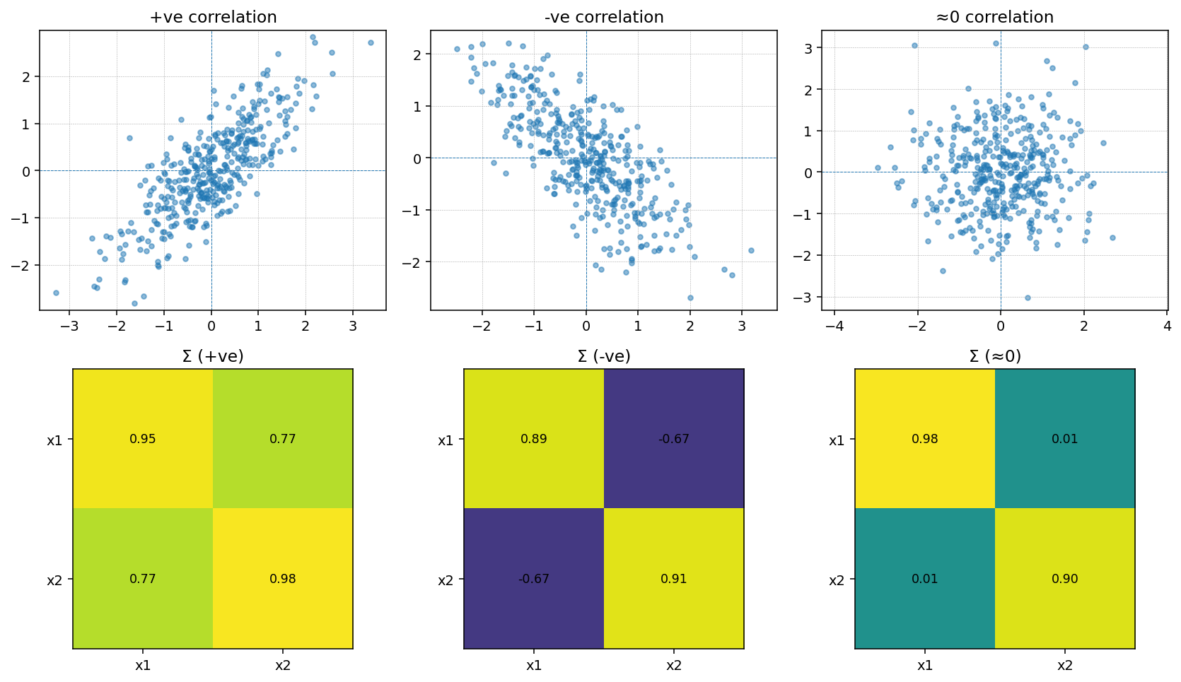 subplot_titles=("Samples + 95% Ellipse", "Covariance Matrix Σ"),