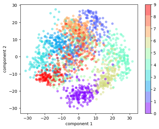 This tells us that our 2-dimensional projection loses a lot of information (as measured by the explained variance) and that we’d need about 20 components to retain 90% of the variance. Looking at this plot for a high-dimensional dataset can help you understand the level of redundancy present in its features.