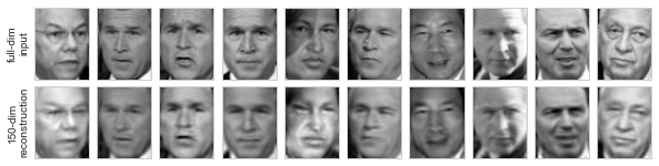 ax[1, 0].set_ylabel('150-dim\nreconstruction');