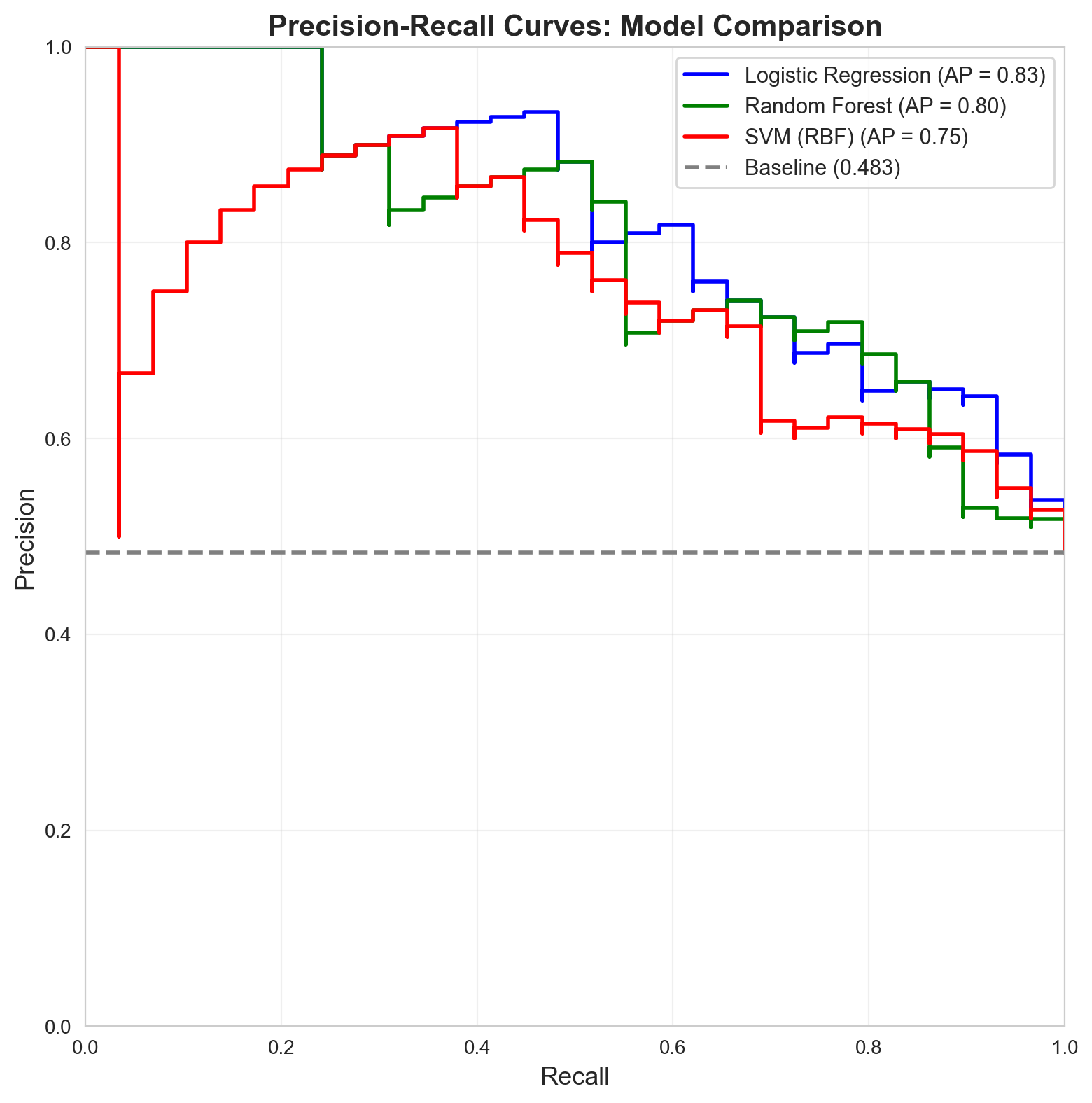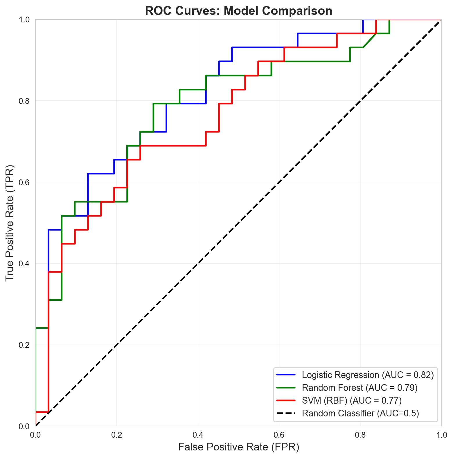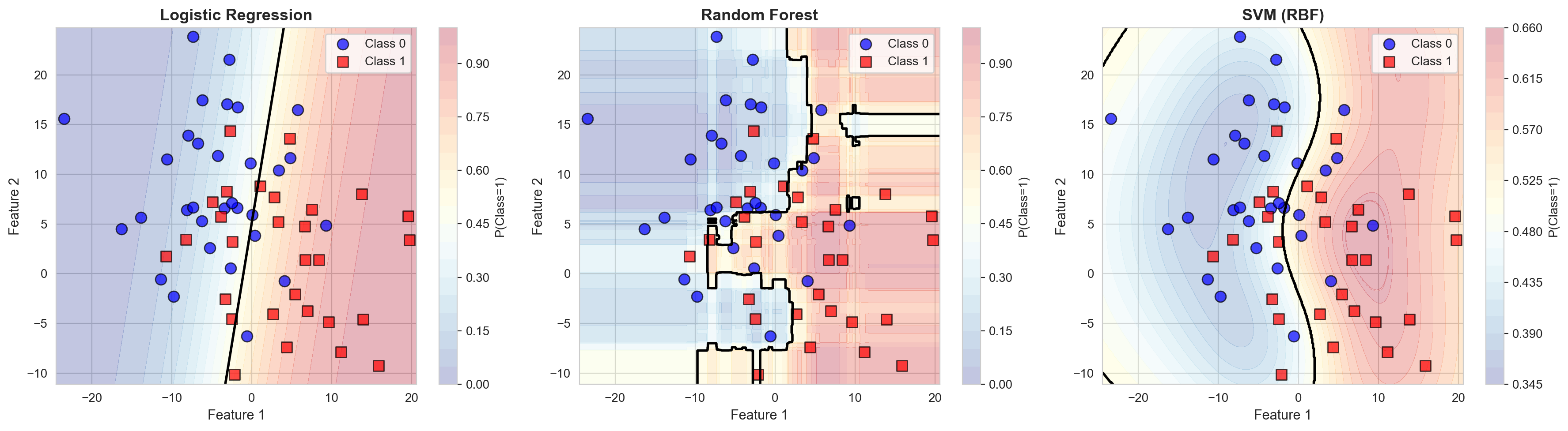 We’ll train 3 different classifiers to compare their performance: 1. Logistic Regression - Linear decision boundary 2. Random Forest - Non-linear, ensemble method 3. Support Vector Machine (SVM) - With RBF kernel