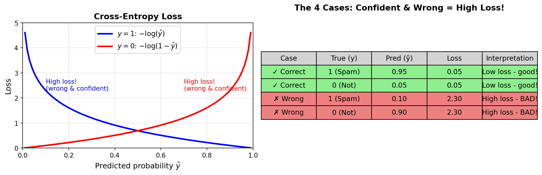 Key insight: Being confident AND wrong = very high loss!