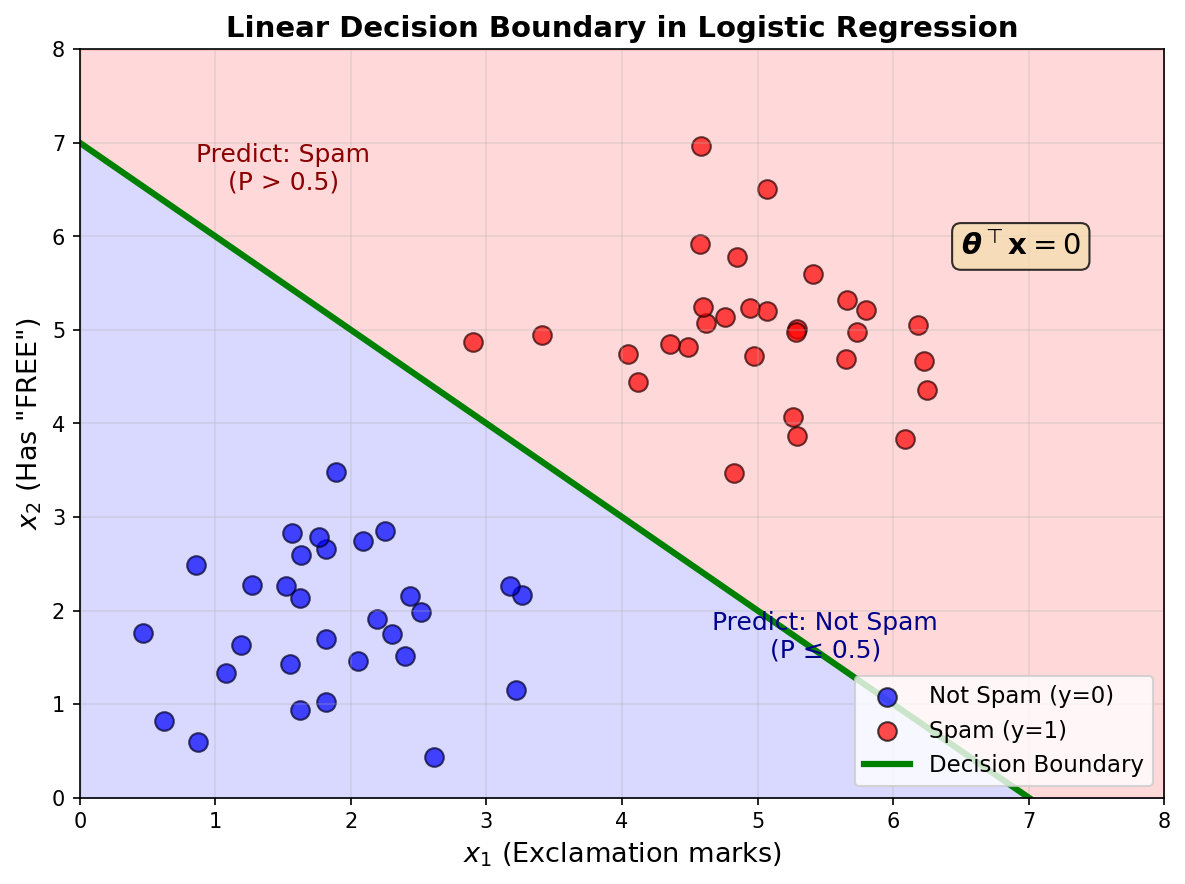 | ≤ 0.5 | Predict NOT SPAM | Higher → fewer false alarms |
