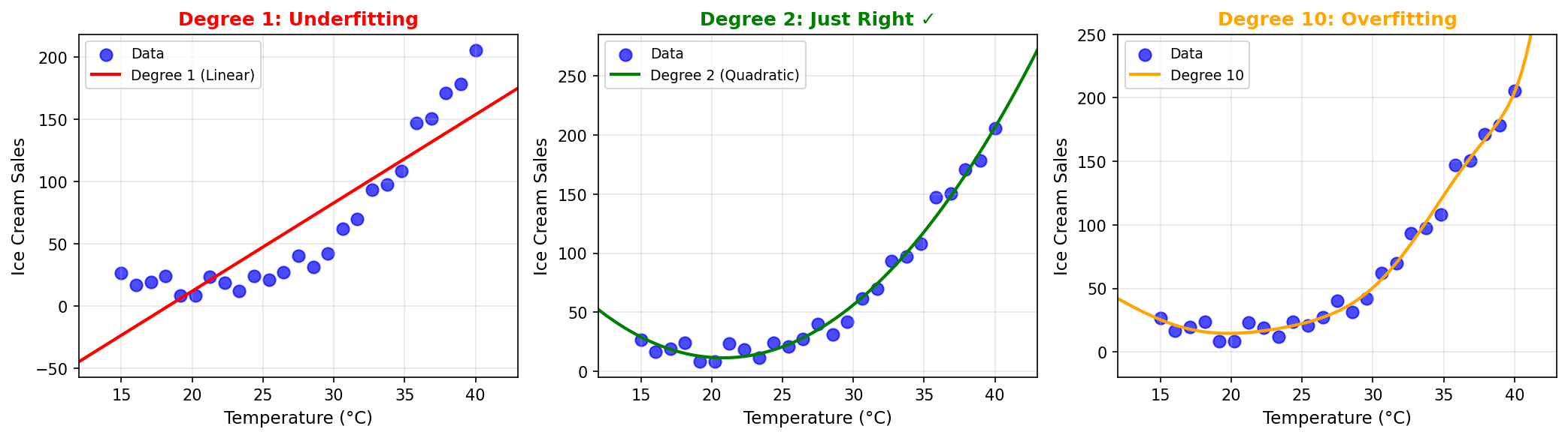poly = PolynomialFeatures(degree=2) # Transform x → [1, x, x²]