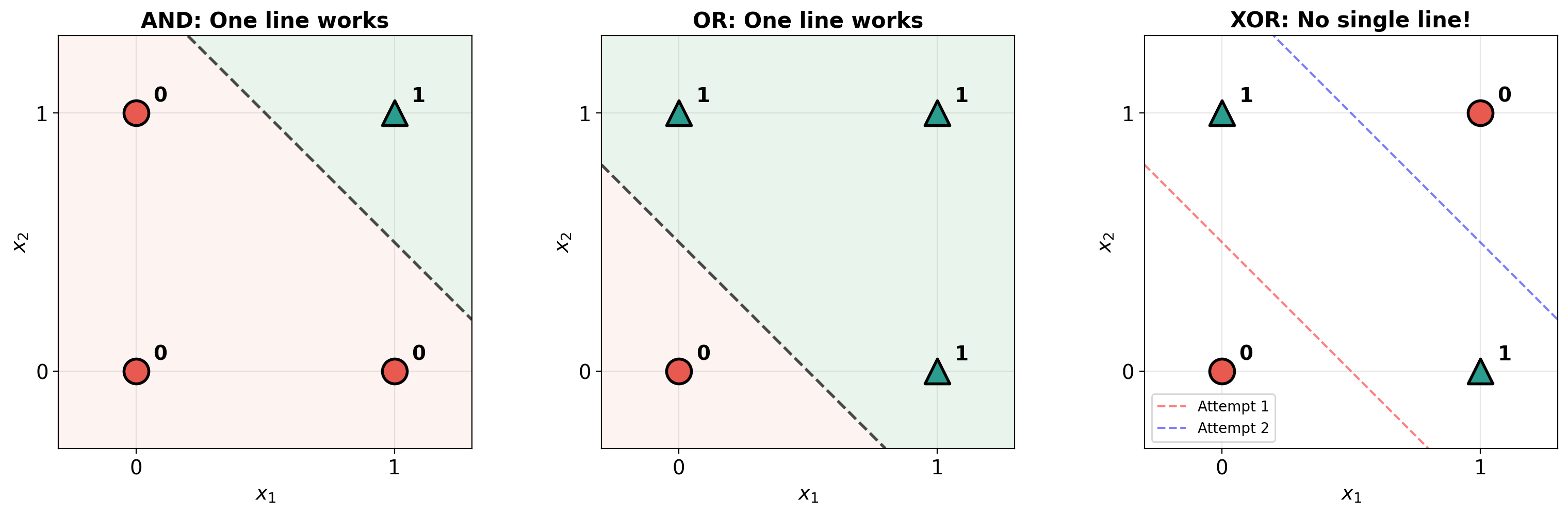 4. The XOR Problem — where one neuron FAILS