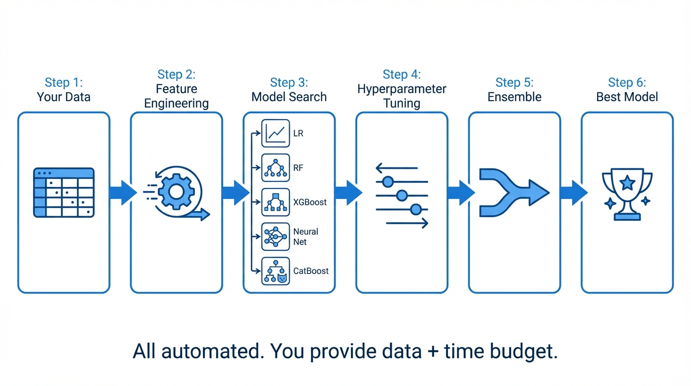 | AutoML | Automates model selection + tuning + ensembling |