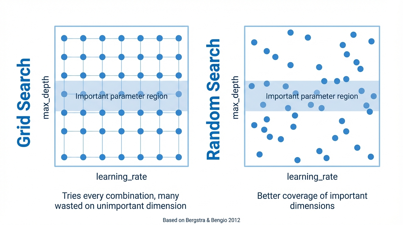 | Random > Grid | Better coverage of important dimensions |
