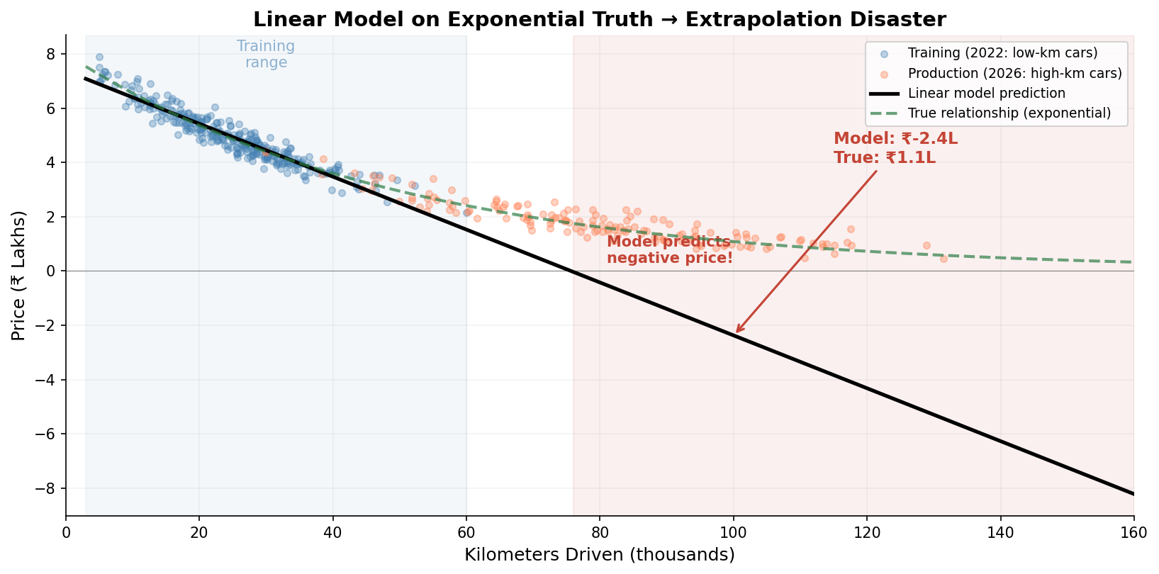 price_drift = 8 * np.exp(-km_drift / 50000) + np.random.normal(0, 0.3, 200)