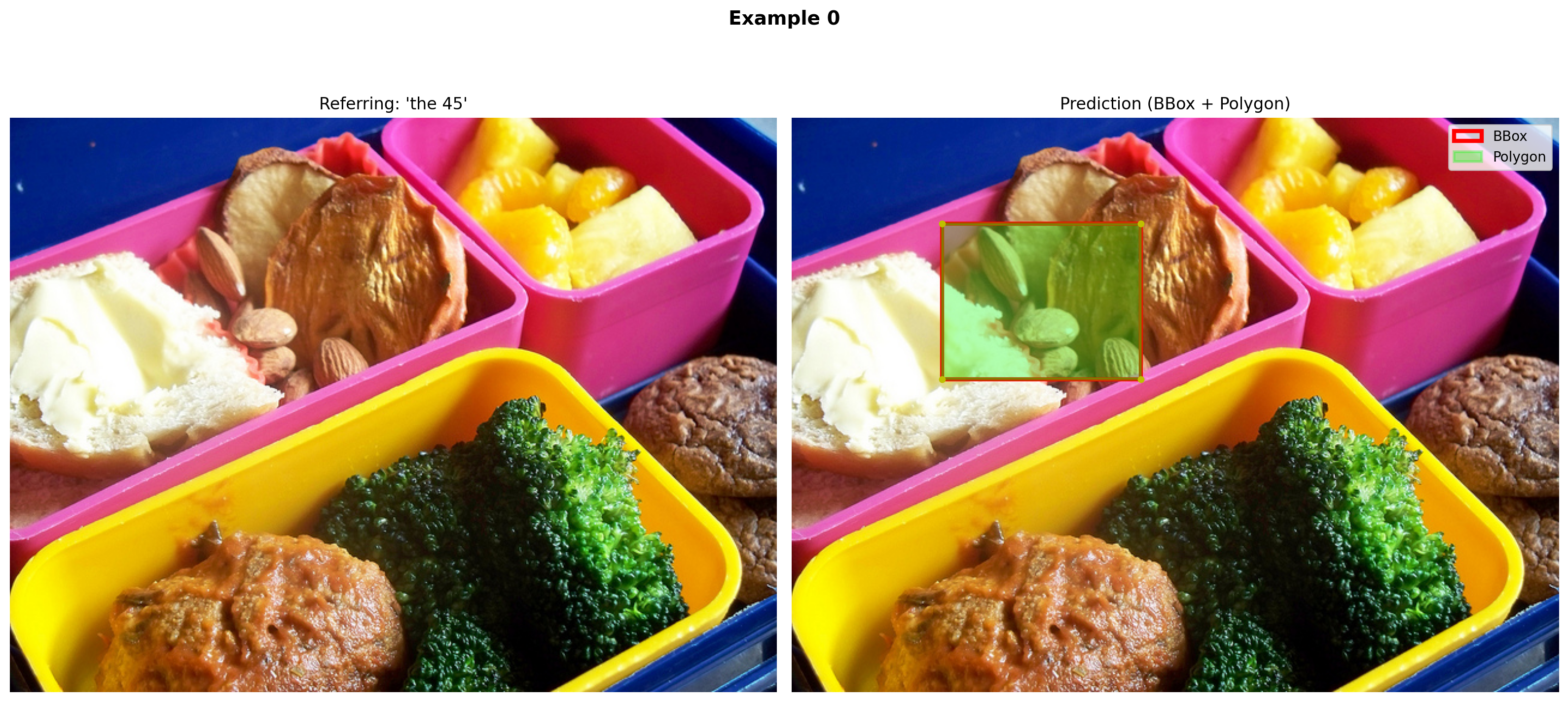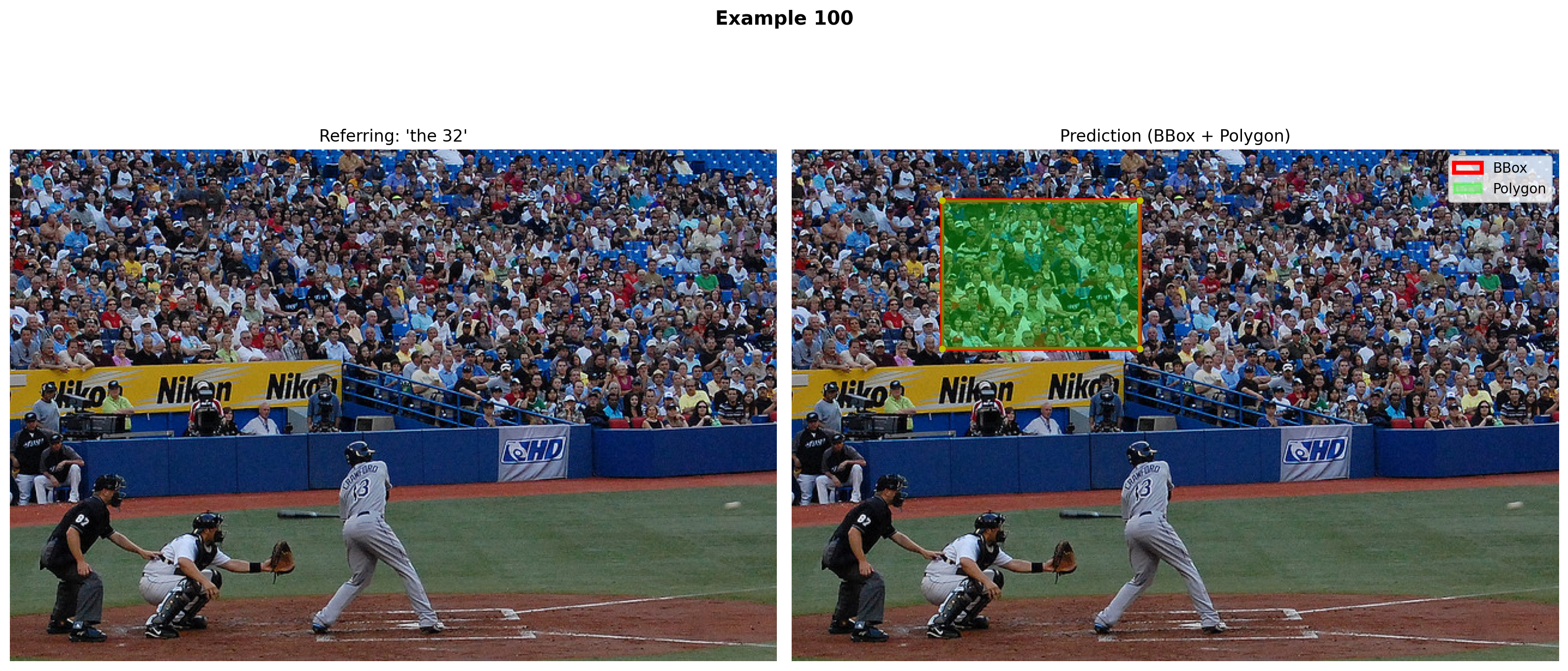 We successfully built a Visual Grounding + Polygon Segmentation VLM!